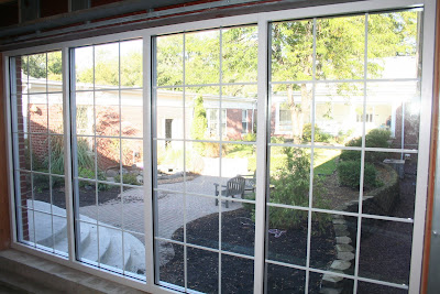 With a little imagination one can begin to see what the interior of the new Town Square will look like in two months. The first photograph below shows the fireplace -- the bright green drywall is the hearth seat and the fireplace rises between the two steel columns.